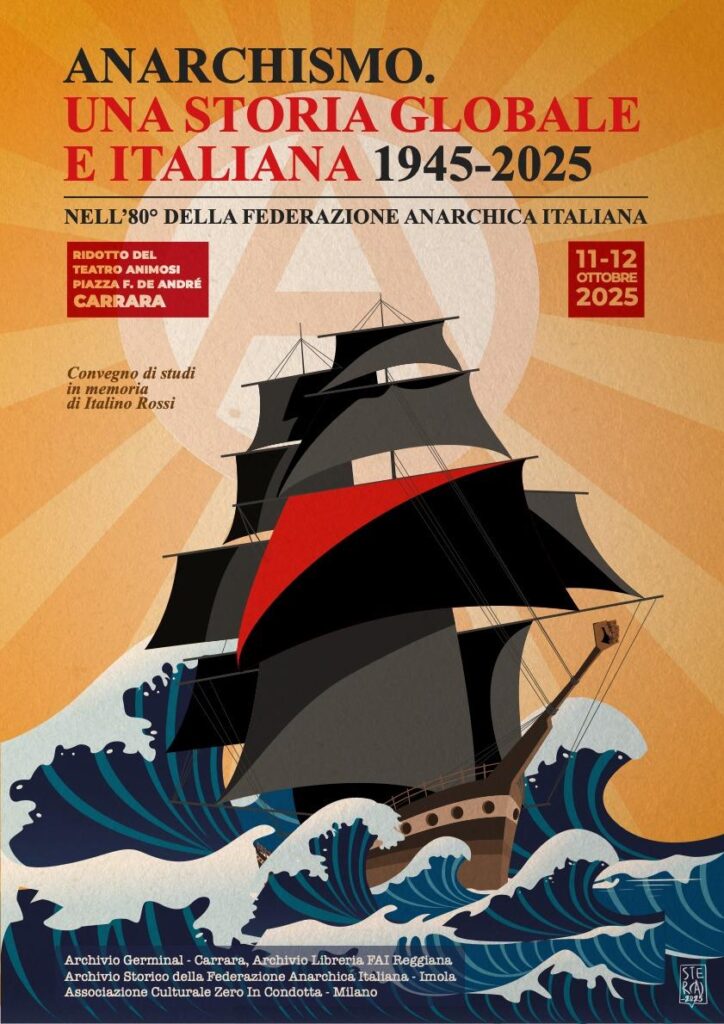 Il secondo fine settimana di ottobre, nell’80° della Federazione Anarchica Italiana, si terrà presso il Teatro degli Animosi di Carrara un convegno di studi dal titolo Anarchismo. Una storia globale e italiana (1945-2025).
