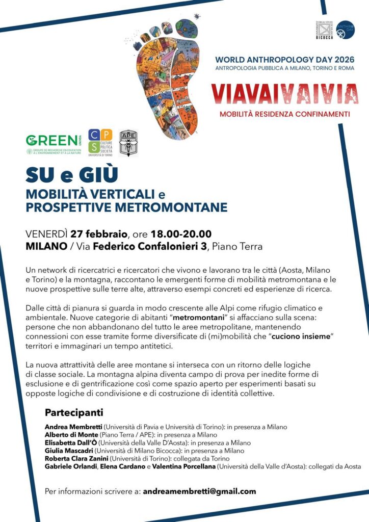 Qualche anno fa ho pubblicato un libro che ripercorreva alcuni dei cammini aperti, abbandonati, ritrovati dalle persone migranti che scavalcano le alpi e le prealpi in ingresso e in uscita dall’Italia. Il confine patrio è tutto alpino e prealpino. Oggi quel testo torna buono all’interno di una serata promossa da APE Milano e Anthroday (Unimib) dal titolo Su e giù. Mobilità verticali e prospettive metromontane, in cui darò un piccolo contributo alla conversazione.